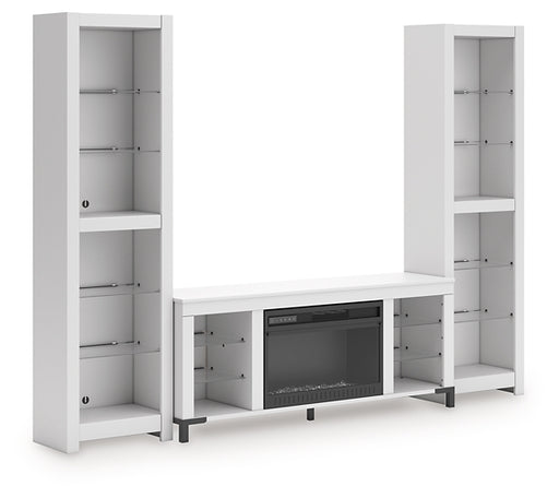 Signature Design by Ashley®Consumer's ChoiceExpress your farmhouse style with this entertainment center with fireplace insert. Its wispy white finish over replicated oak wood grain is a delig...