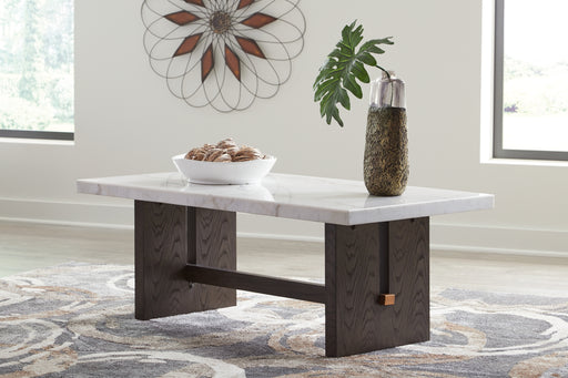 Signature Design by Ashley®Consumer's ChoiceElegance meets earthy charm in this coffee table. Crafting a contemporary living room? The faux Carrara marble top expertly pairs with the reeded b...
