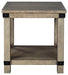 Crafted with solid pine wood treated to a weathered gray finish, this end table is rustic farmhouse living at its best. Crossbuck styling adds striking flair. Metal industrial brackets incorporate an industrial twist.