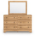 Country rustic. Vintage inspired. However you see it, you’re sure to be charmed by this dresser with mirror. Adorned with chic drawer knobs and a warm oak grain finish, it offers a relaxed mix of picturesque aesthetics. Its storage space gracefully welcomes clothes, linens and other bedroom necessities. With an air of easygoing elegance, this set lets you drift away to a simpler time and place.