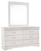 Details Made of engineered wood (MDF/particleboard), 6 smooth-gliding drawers, Antiqued pewter-tone hardware, Mirror attaches to back of dresser, Assembly required, Includes tipover restraint device