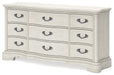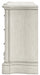 Details Made with hardwood solids, spruce veneer, MDF substrates and cast resin components, Antiqued white painted finish, 9 drawers with fully finished interiors, French and English dovetail construction and ball-bearing side glides, Metal bar pulls with aged pewter-tone finish