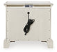 Details B980B2: Includes headboard, footboard and rails, Made with hardwood solids, spruce veneer, MDF substrates and cast resin components , Antiqued white painted finish, Polyester upholstery, Button tufting, Foundation/box spring required, sold separately, Mattress available, sold separately, Assembly required, B980B1: Includes dresser and mirror, Made with hardwood solids, spruce veneer, MDF substrates and cast resin components, Antiqued white painted finish, 9 drawers with fully finished interiors, French and English dovetail construction and ball-bearing side glides, Metal bar pulls with aged pewter-tone finish, Mirror attaches to back of dresser, B980-93: Made with hardwood solids, spruce veneer, MDF substrates and cast resin components, Antiqued white painted finish, 3 drawers with fully finished interiors, French and English dovetail construction and ball-bearing side glides, Metal bar pulls with aged pewter-tone finish, 110V power supply with dual USB charging ports, Power cord included; UL Listed,