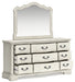 | Details | B980B2: Includes headboard, footboard and rails, Made with hardwood solids, spruce veneer, MDF substrates and cast resin components , Antiqued white painted finish, Polyester upholstery, Button tufting, Foundation/box spring required, sold separately, Mattress available, sold separately, Assembly required, B980B1: Includes dresser and mirror, Made with hardwood solids, spruce veneer, MDF substrates and cast resin components, Antiqued white painted finish, 9 drawers with fully finished interiors, French and English dovetail construction and ball-bearing side glides, Metal bar pulls with aged pewter-tone finish, Mirror attaches to back of dresser, B980-46: Made with hardwood solids, spruce veneer, MDF substrates and cast resin components, Antiqued white painted finish, 5 drawers with fully finished interiors, French and English dovetail construction and ball-bearing side glides, Metal bar pulls with aged pewter-tone finish, B980-93: Made with hardwood solids, spruce veneer, MDF substrates and cast resin components, Antiqued white painted finish, 3 drawers with fully finished interiors, French and English dovetail construction and ball-bearing side glides, Metal bar pulls with aged pewter-tone finish, 110V power supply with dual USB charging ports, Power cord included; UL Listed, | |