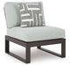 Sleek, contemporary style meets outdoor living in this sectional. Its clean-lined black aluminum frame and resin wicker back expertly balance good looks and longevity. The enhanced UV resistance of Nuvella+™ fabric keeps the cushions light and bright, weathering the seasons beautifully. And the modular design allows you to switch up the layout when it’s time for a refresh. With this sectional on the back porch or poolside, you can confidently curate a luxe vibe.