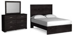 Belachime Full Panel Bed with Mirrored Dresser