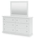 Details B139B43: Includes panel headboard/footboard and rails, Made with engineered wood (MDF/particleboard/plywood) and decorative laminate for the right balance of affordability and durability, Replicated solid white paint, Decorative laminate replicates natural or man-made material surfaces with consistent color, pattern and texture, Foundation/box spring required, sold separately, Mattress available, sold separately, Assembly required, B139B40: Includes dresser and mirror, Made of engineered wood (MDF/particleboard), Knobs with pewter-tone finish, Scalloped moulding, 6 smooth-operating drawers, Includes tipover restraint device, Mirror attaches to back of dresser; can also be mounted on wall horizontally or vertically, Safety is a top priority, clothing storage units are designed to meet the most current standard for stability, ASTM F 2057 (ASTM International), Drawers extend out to accommodate maximum access to drawer interior while maintaining safety, B139-91: Made of engineered wood (MDF/particleboard), Pewter-tone knobs, 1 smooth-operating drawer, 1 storage cubby, Scalloped moulding, Small Space Solution,