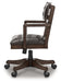 Details Made with solid wood frame, Dark brown wood-tone finish, Foam cushioned seat and backrest with faux leather upholstery, Adjustable height, Casters for easy mobility, Assembly required