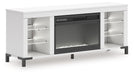 | Details | Made with engineered wood (MDF/particleboard/plywood) and decorative laminate for the right balance of affordability and durability, Matte white finish with subtle replicated wood grain, Decorative laminate replicates natural or man-made material surfaces with consistent color, pattern and texture, Legs with black finish, 4 glass shelves, Fireplace insert and shelves feature color and brightness controlled LED lighting, 3 color settings for synchronized LED lights: blue, red and white, Remote control with LED display, Power cord included; UL Listed, Minor assembly required | |