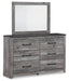 | Details | B1290B4: Includes king panel headboard/footboard and rails, Made with engineered wood (MDF/particleboard/plywood) and decorative laminate for the right balance of affordability and durability, Smoky gray finish over replicated oak grain with authentic touch, Decorative laminate replicates natural or man-made material surfaces with consistent color, pattern and texture, Foundation/box spring required, sold separately, Mattress available, sold separately, Assembly required, Bed is compatible with an adjustable base, B1290B1: Includes dresser and mirror, Made with engineered wood (MDF/particleboard/plywood) and decorative laminate for the right balance of affordability and durability, Two-tone look: smoky gray replicated oak grain accented with rustic charcoal finish; replicated oak grain with authentic touch, Charcoal finish over replicated oak grain with authentic touch, Decorative laminate replicates natural or man-made material surfaces with consistent color, pattern and texture, Large-scaled handles in a dark hue, 6 smooth-gliding drawers with dovetail construction, Drawer interiors are lined with a faux linen laminate for a clean, finished look, Framed front and pilasters, Mirror attaches to back of dresser; can also be mounted on wall horizontally or vertically, Safety is a top priority, clothing storage units are designed to meet the most current standard for stability, ASTM F 2057 (ASTM International), Drawers extend out to accommodate maximum access to drawer interior while maintaining safety, Assembly required, B1290-44: Expertly made with engineered wood (MDF/particleboard/plywood) for the right balance of affordability and durability, Decorative laminate replicates natural or man-made material surfaces with consistent color, pattern and texture, Two-tone look: smoky gray replicated oak grain accented with rustic charcoal finish; replicated oak grain with authentic touch, Large-scaled handles in a dark hue, 4 smooth-gliding drawers with dovetail construction, Drawer interiors are lined with a faux linen laminate for a clean, finished look, Framed front and pilasters, Safety is a top priority, clothing storage units are designed to meet the most current standard for stability, ASTM F 2057 (ASTM International), Drawers extend out to accommodate maximum access to drawer interior while maintaining safety, Assembly required, B1290-92: Expertly made with engineered wood (MDF/particleboard) for the right balance of affordability and durability, Decorative laminate replicates natural or man-made material surfaces with consistent color, pattern and texture, Two-tone look: smoky gray replicated oak grain accented with rustic charcoal finish; replicated oak grain with authentic touch, Large-scaled handles in a dark hue, 2 smooth-gliding drawers with dovetail construction, Drawer interiors are lined with a faux linen laminate for a clean, finished look, Framed front and pilasters, Assembly required, | |