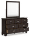 | Details | B441B9: Includes panel headboard, footboard, rails and slats, Made with hardwood solids, engineered wood veneer and MDF substrates, Dark brown finish, Floating panel headboard, Picture frame footboard, Foundation/box spring required, sold separately , Mattress available, sold separately, Assembly required, B441B1: Includes dresser and mirror, Made with hardwood solids, engineered wood veneer and MDF substrates, Dark brown finish, Metal bar pulls with bright nickel-tone finish, 7 smooth-gliding drawers with dovetail construction and metal center guides, Drawer interiors are lined with a wood grain laminate for a clean, finished look, Top moulding on dresser, Mirror attaches to back of dresser, B441-92: Made with hardwood solids, engineered wood veneer and MDF substrates, Dark brown finish, Metal bar pulls with bright nickel-tone finish, 2 smooth-gliding drawers with dovetail construction and metal center guides, Drawer interiors are lined with a wood grain laminate for a clean, finished look, Top moulding, | |
