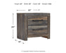 | Details | B211-46: Made of engineered wood (MDF/particleboard) and decorative laminate, Brown rustic finish with burnt orange and teal accents in a replicated wood grain with authentic touch, Large-scale hardware with dark finish, 5 smooth-gliding drawers, Drawer interiors are lined with a faux linen laminate for a clean, finished look, Includes tipover restraint device, Small Space Solution, Safety is a top priority, clothing storage units are designed to meet the most current standard for stability, ASTM F 2057 (ASTM International), Drawers extend out to accommodate maximum access to drawer interior while maintaining safety, B211-92: Made of engineered wood (MDF/particleboard) and decorative laminate, Brown rustic finish with burnt orange and teal accents in a replicated wood grain with authentic touch, 2 smooth-gliding drawers, Drawer interiors are lined with a faux linen laminate for a clean, finished look, Large-scale hardware with dark finish, 2 slim-profile USB-C charging stations, Power cord included; UL Listed, Small Space Solution, B211B1: Made of engineered wood (MDF/particleboard) and decorative laminate, Brown rustic finish with burnt orange and teal accents in a replicated wood grain with authentic touch, 6 smooth-gliding drawers, Drawers lined with faux linen laminate, Dark-tone industrial hardware, Mirror attaches to back of dresser, Assembly required, Includes tipover restraint device, B211B45: Includes bookcase headboard, footboard, 2 underbed storage units, rails and wood roll slats, Made of engineered wood (MDF/particleboard) and decorative laminate, Brown rustic finish with burnt orange and teal accents in a replicated wood grain with authentic touch, Footboard with 4 drawers and 4 open cubbies that each accommodate 10.5"W x 10.5"D x 11"H cube storage bin (not provided), Headboard includes a dimming LED light; 3 open cubbies, Dark-tone industrial hardware, Included slats eliminate need for foundation/box spring, Mattress available, sold separately, Assembly required, | |