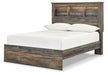 Details B211B1: Made of engineered wood (MDF/particleboard) and decorative laminate, Brown rustic finish with burnt orange and teal accents in a replicated wood grain with authentic touch, 6 smooth-gliding drawers, Drawers lined with faux linen laminate, Dark-tone industrial hardware, Mirror attaches to back of dresser, Assembly required, Includes tipover restraint device, B211B46: Includes bookcase headboard, footboard and rails, Made of engineered wood (MDF/particleboard) and decorative laminate, Brown rustic finish with burnt orange and teal accents in a replicated wood grain with authentic touch, Headboard includes a dimming LED light; 3 open cubbies, Mattress and foundation/box spring available, sold separately, Assembly required, Bed is compatible with an adjustable base,