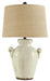 This table lamp illuminates with vintage-inspired style. An antiqued cream glaze on the base boasts a crackle effect. Perfect for farmhouse and cottage-chic spaces, it sits beautifully on an end table.