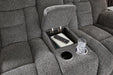 Sometimes seeing is believing. And you can rest assured that this reclining loveseat with console is every bit as indulgent as it looks. Designed to put you in the lap of luxury, the generously scaled seating—wrapped in a wonderfully plush and practical charcoal gray Next-Gen Nuvella™ upholstery—sports pillow-wrapped armrests and curvaceously cushioned head-neck support for feel-good flair.