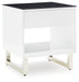 Combining a high-gloss white finish with a black glass tabletop, the Gardoni end table proves opposites really do attract. It's the perfect blend of modern style and functionality, with a spacious drawer and open cubby for keeping media needs close at hand. What a smart choice on so many levels.