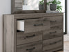 | Details | PCB2405B2: Includes panel headboard/footboard and rails, Made with engineered wood (MDF/particleboard/plywood) and decorative laminate for the right balance of affordability and durability , Weathered gray finish over replicated oak grain, Decorative laminate replicates natural or man-made material surfaces with consistent color, pattern and texture, Foundation/box spring required, sold separately , Mattress available, sold separately, Minor assembly required, PCB2405B1: Includes dresser and mirror, Made with engineered wood (MDF/particleboard/plywood) and decorative laminate for the right balance of affordability and durability , Weathered gray finish over replicated oak grain, Decorative laminate replicates natural or man-made material surfaces with consistent color, pattern and texture, Large-scale dark colored handles, 6 smooth-gliding drawers, Drawer interiors are lined with a faux linen laminate for a clean, finished look , Safety is a top priority, clothing storage units are designed to meet the most current standard for stability, ASTM F 2057 (ASTM International), Drawers extend out to accommodate maximum access to drawer interior while maintaining safety, Mirror attaches to back of dresser; can also be mounted on wall horizontally or vertically , Minor assembly required, | |