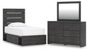 Hollivern Twin Panel Storage Bed with Mirrored Dresser