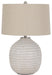Details Made of ceramic with fabric modified drum shade, Beige and white glaze, 3-way switch, 1 type A bulb (not included), 150 watts max or LED equivalent; UL Listed, Minor assembly
