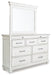 Details B777B8: Includes king panel headboard and footboard with king panel rails, Made with solid wood, veneers and engineered wood, Distressed whitewash finish, Foundation/box spring required, sold separately, Mattress available, sold separately, Assembly required, B777B1: Includes dresser and mirror, Made with solid wood, veneers and engineered wood, Distressed whitewash finish, Dark gray pewter-tone finished metal hardware, 7 smooth-gliding drawers, plus 2 small-scaled accessory drawers, Mirror attaches to back of dresser, Assembly required,