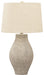 With its textural elements and neutral hues, this table lamp is a natural fit for so many spaces. The paper composite base with organic texture feels wonderfully at home.