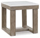 This square end table is simple in design but big on style. Finished with a trend-right grayish brown wood tone, its bold, blocky profile and natural marble top are timeless classic choices that work so well with a variety of settings. Adding to its beauty, the marble top's color variations, fissures, mineral deposits and veining are naturally formed and are not defects.