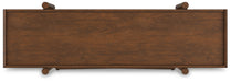 Details H615-44: Made with rubberwood solids, mango wood veneer and MDF substrate, Medium brown natural wood-tone finish, 3 drawers with fully finished interior, dovetail construction and ball-bearing side glides, Cutout for cord management, Open raceway for power cord management, Round tapered legs, H615-01: Made with solid hardwood frame, Medium brown natural wood-tone finish, Polyester upholstery, Foam cushion, H615-70: Made with rubberwood solids, mango wood veneer and MDF substrate, Medium brown natural wood-tone finish, 5 fixed shelves, Round legs,