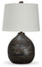 Infuse your home with the casual vibe of this table lamp. Its black finish is elevated with a goldtone circular pattern. The lamp's slightly urban industrial design brings balance and brightness to your room with double the style.