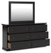 | Details | Includes dresser and mirror, Made with engineered wood (MDF/particleboard/plywood) and decorative laminate for the right balance of affordability and durability , Solid black finish, Decorative laminate replicates natural or man-made material surfaces with consistent color, pattern and texture, Pewter-tone knobs, 6 smooth-gliding drawers, Mirror attaches to back of dresser; can also be mounted on wall horizontally or vertically, Minor assembly required | |