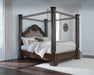 Details B947B10: Includes upholstered poster headboard panel, poster footboard panel, rails, slats, posts and canopy , Made with hardwood solids, oak veneer, MDF substrates and cast resin components, Dark brown finish, Metal canopy, Foam headboard cushion with polyester upholstery, Measure room, including ceiling height, to ensure bed clears fans and light fixtures, Foundation/box spring required, sold separately, Mattress available, sold separately, Assembly required, B947B1: Includes dresser and mirror, Made with hardwood solids, oak and ash swirl veneers, MDF substrates and cast resin components, Dark brown finish, 6 smooth-gliding drawers with dovetail construction (top drawer felt lined), Drawer pulls with antiqued goldtone finish, Mirror attaches to back of dresser, B947-93: Made with hardwood solids, oak and ash swirl veneers, MDF substrates and cast resin components, Dark brown finish, 2 smooth-gliding drawers with dovetail construction (top drawer felt lined), Pull-out tray behind bottom drawer, Drawer pulls with antiqued goldtone finish, 110V power supply with dual USB charging ports, Power cord included; UL Listed,