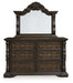 | Details | B947B4: Includes upholstered panel headboard, upholstered panel footboard and panel rails, Made with hardwood solids, oak and ash swirl veneers, MDF substrates and cast resin components, Dark brown finish, Polyester upholstery with button tufting, Foundation/box spring required, sold separately, Mattress available, sold separately, Assembly required, B947B1: Includes dresser and mirror, Made with hardwood solids, oak and ash swirl veneers, MDF substrates and cast resin components, Dark brown finish, 6 smooth-gliding drawers with dovetail construction (top drawer felt lined), Drawer pulls with antiqued goldtone finish, Mirror attaches to back of dresser, B947-93: Made with hardwood solids, oak and ash swirl veneers, MDF substrates and cast resin components, Dark brown finish, 2 smooth-gliding drawers with dovetail construction (top drawer felt lined), Pull-out tray behind bottom drawer, Drawer pulls with antiqued goldtone finish, 110V power supply with dual USB charging ports, Power cord included; UL Listed, | |