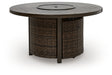 Looking for that special spot to relax and entertain on your deck or patio? Then you'll love this outdoor fire pit table. With beautifully textured resin wicker over a sturdy aluminum frame, it brings so much style and warmth to your outdoor space. The hand-brushed, wood-look finish means you can spend less time worrying and more time chilling. And a stainless steel burner with glass beads adds a captivating element that's sure to wow. What a smart and stylish way to create a beautiful, lasting space for everyone to enjoy.
