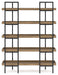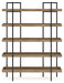 Details Made with mango wood veneer, MDF substrate and metal, Light brown wood-tone finish, Gunmetal gray finish on frame, 5 gallery shelves, Assembly required