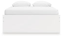 | Details | Includes platform bed panels, platform rails, roll slats and 2 side storage drawers, Made with engineered wood (MDF/particleboard/plywood) and decorative laminate for the right balance of affordability and durability, Solid white finish, Decorative laminate replicates natural or man-made material surfaces with consistent color, pattern and texture, 2 smooth-gliding storage drawers with ball-bearing side glides; vinyl-wrapped sides and back for durability, Bed does not require additional foundation/box spring; accommodates most zero clearance adjustable bases with the addition of a bunkie board, Mattress available, sold separately, Assembly required | |