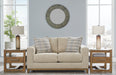 Serene style with a modern sensibility. Delight in the cozy, versatile embrace of this loveseat. It takes an on-trend approach to irresistible texture and natural beauty, showcasing soft upholstery accented with a transitional wood trim. As refined as it is laid back, the loveseat also keeps comfort a priority with plush, thick seat cushions.
