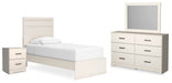 Stelsie Twin Panel Bed with Mirrored Dresser and Nightstand