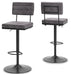 Have a seat in sleek style with this upholstered swivel bar stool. Contemporary with a casual vibe, it's dressed to impress with a metal frame and a cushioned seat and back wrapped in gray faux leather. Along with the bar stool's smooth-gliding swivel, a pedestal allows you to adjust its height to accommodate your space.