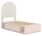 Pretty in pink. This twin upholstered panel bed with storage keeps the spirit of your home’s modern aesthetic while suiting all your young one’s needs. Its cozy-cute upholstery and subtle blush finish bring a playful, charming vibe to bedtime. Made for her and styled for you, it’s a lovely addition to a beautifully chic child’s bedroom.