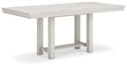 Details Made with rubberwood solids, ash veneer and MDF substrates, Antiqued white finish with wood grain texture, Tabletop with planked effect, Two 12” extension leaves, Table extends by pulling both ends and dropping in leaf, Assembly required