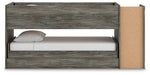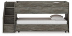 Details Includes loft bed, left storage steps with loft ends, loft caster bed and 2 sets of roll slats, Made with engineered wood (MDF/particleboard/plywood) and decorative laminate for the right balance of affordability and durability, Rustic warm gray finish over replicated oak grain with authentic touch, Decorative laminate replicates natural or man-made material surfaces with consistent color, pattern and texture, Bed does not require additional foundation/box spring, Mattress available, sold separately, Assembly required