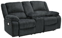 Details Dual-sided recliner, One-touch power control with adjustable positions and zero-draw USB plug-in, Zero-draw technology only consumes power when the USB receptacle is in use, Corner-blocked frame with metal reinforced seat, Attached cushions, High-quality foam cushions wrapped in poly fiber, Polyester upholstery, Storage console with 2 cup holders, Power cord included; UL Listed