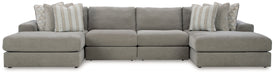 | Details | Includes 4 modular pieces: left-arm facing corner chaise, right-arm facing corner chaise and 2 armless chairs, "Left-arm" and "right-arm" describe the position of the arm when you face the piece, Corner-blocked frame, Reversible seat and back cushions, High-resiliency foam cushions wrapped in poly fiber, Accent pillows included, Pillows with feather-fiber blend, Polyester chenille/polyester upholstery, Non-skid legs, Platform foundation system resists sagging 3x better than spring system after 20,000 testing cycles by providing more even support, Smooth platform foundation maintains tight, wrinkle-free look without dips or sags that can occur over time with sinuous spring foundations, Modular pieces can float anywhere; sides are finished (with no connectors) | |
