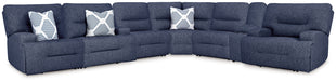 | Details | Includes 7 modular pieces: left-arm facing power recliner, console with storage, wedge, oversized power recliner, right-arm facing power recliner and 2 power armless recliners, "Left-arm" and "right-arm" describe the position of the arm when you face the piece, Versatile modular pieces fit together in a variety of configurations, One-touch power control with adjustable positions, Easy View™ adjustable headrest and zero-draw USB port; zero-draw technology only consumes power when the USB receptacle is in use, Easy View™ adjustable headrest puts your head and neck in optimum position for reading or watching TV even if you're fully reclined, Zero-gravity mechanism allows optimum reclining comfort with infinite reclining positions at the touch of a button, Corner-blocked frame with metal reinforced seat; attached cushions; high-quality foam cushions wrapped in poly fiber, Accent pillows included; pillows with soft polyfill, Polyester upholstery, Next-Gen Nuvella™ is a performance fabric that is soft, easy to clean, stain-resistant and durable, Clean fabric with mild soap and water, let air dry; for stubborn stains, use a solution of 4 oz. bleach to 28 oz. water, Console with 2 cup holders and hidden storage, Power cord included; UL Listed | |