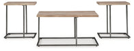 Details Includes coffee table and 2 end tables, Made with tubular steel frame, decorative laminate and MDF substrate, Tabletop with replicated reclaimed lumber pattern, Legs with durable matte black powder coat finish, Assembly required