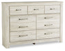 Your bedroom isn’t just a room. It’s a canvas. Express your farmhouse style with this dresser. Wispy white finish over replicated oak wood grain brightens up the space with charm. Brushed nickel-tone handles with black edging finesse the piece with a bit of shine. Drawers are spacious and lined with faux linen laminate to hold your belongings with care. This clean-lined profile is the perfect authentic foundation for inviting decor.