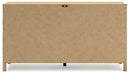 This dresser puts the dream of a casual bedroom retreat beautifully within reach. A warm light brown finish over replicated hickory grain exudes a homey vibe. The smooth-gliding drawers are packed with storage possibilities. It’s a simply relaxed way to achieve the look you want to wake up to every morning.