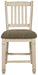 The beauty of this upholstered bar stool is something to savor. Designed to serve up comfort and flair, this rake-back bar stool entices with a cushioned seat covered in a heavy woven fabric that complements the antiqued white finish.