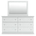 | Details | Includes dresser and mirror, Made of engineered wood (MDF/particleboard), Knobs with pewter-tone finish, Scalloped moulding, 6 smooth-operating drawers, Includes tipover restraint device, Mirror attaches to back of dresser; can also be mounted on wall horizontally or vertically, Safety is a top priority, clothing storage units are designed to meet the most current standard for stability, ASTM F 2057 (ASTM International), Drawers extend out to accommodate maximum access to drawer interior while maintaining safety | |
