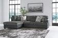 Appeal to your eye for ultra-contemporary design with this sectional. Chic and sleek in dark neutrals, it pairs cozy fabric with faux leather for invitingly cool character. And with a roomy chaise offering extra seating space, family and friends can chill out in comfort and style.