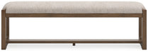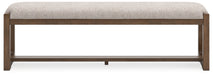 This dining bench sits comfortably at the intersection of modern lodge and farmhouse aesthetics. Your warm and welcoming disposition is reflected in its charming architectural elements and neutral textural fabric. Even with its poise, the bench remains practical. Its cushioned seat invites you to linger longer at the table, defining your dining room with reliable function and style.